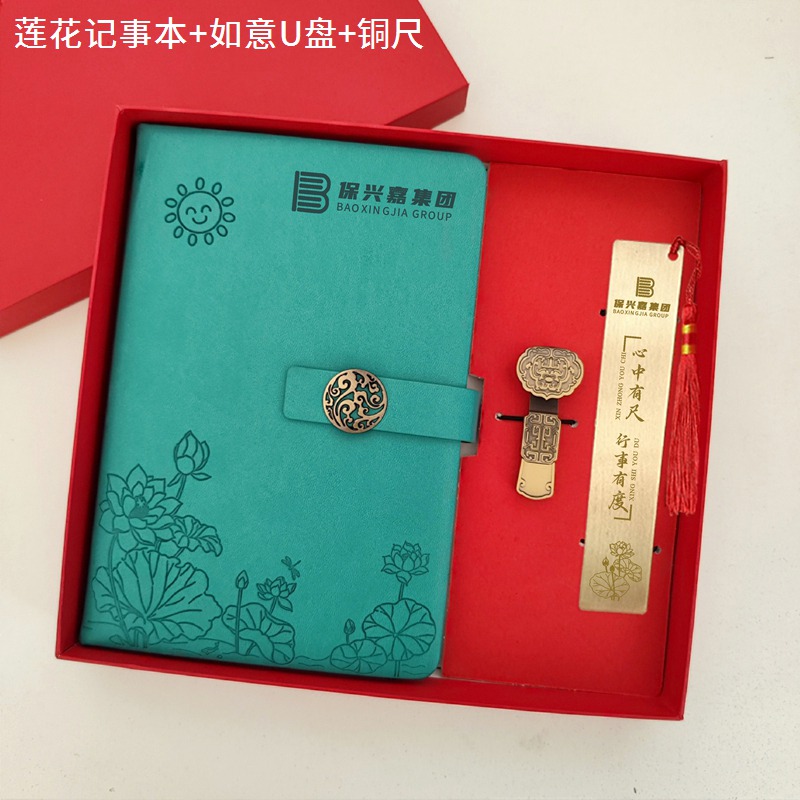 莲花记事本+如意U盘+铜尺 礼盒套装