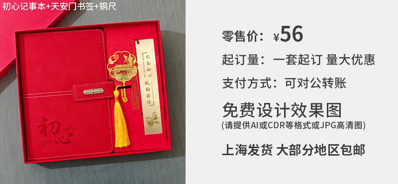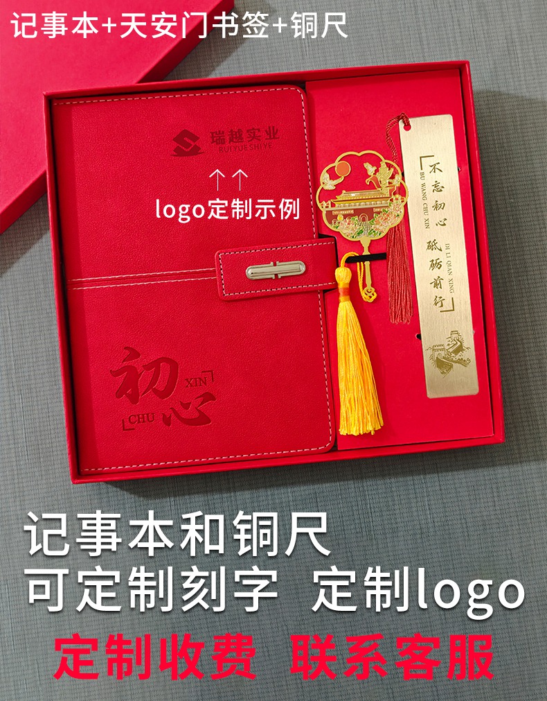 红色初心记事本+天安门广场书签+铜尺 礼盒套装