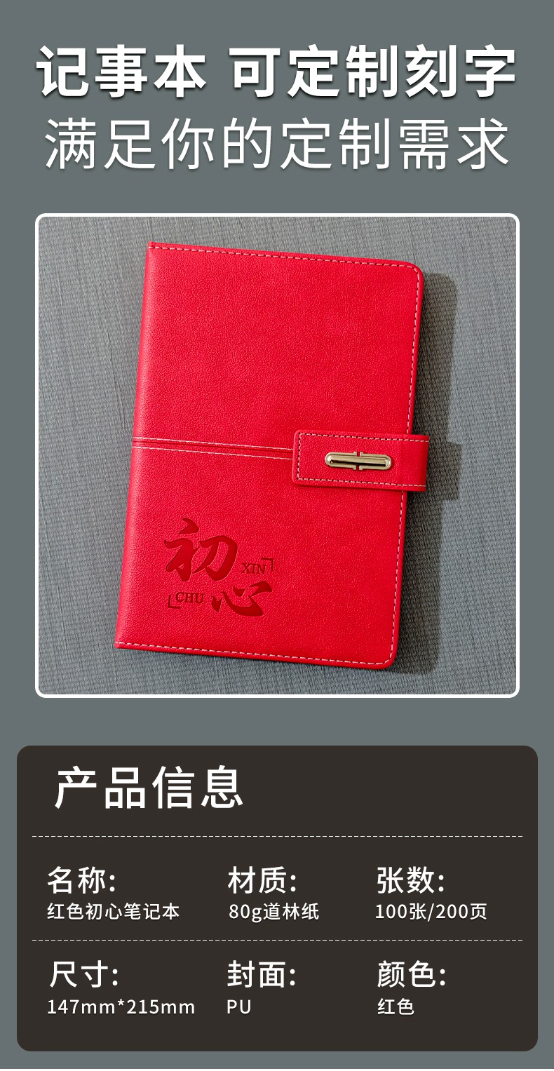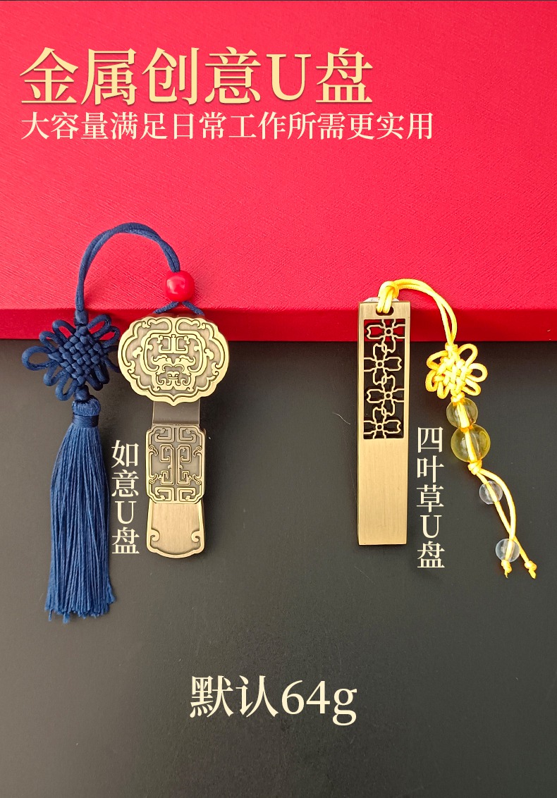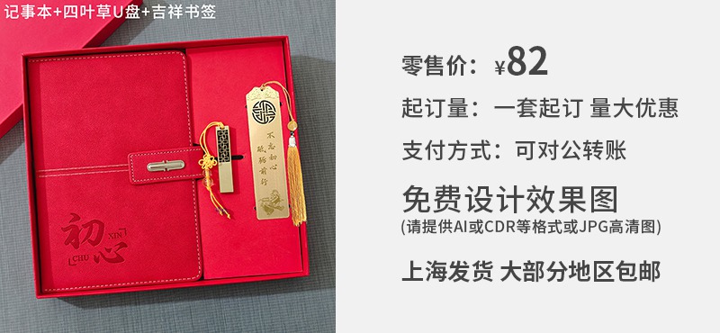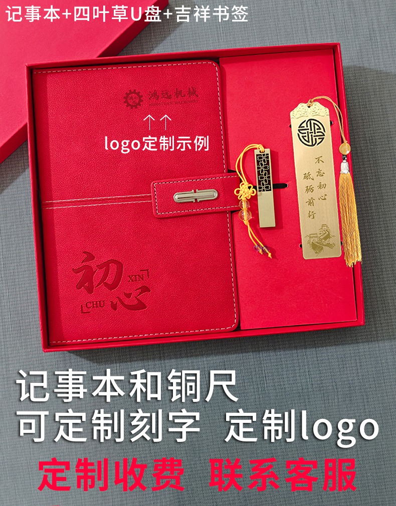 红色初心记事本+四叶草U盘+吉祥书签 礼盒套装