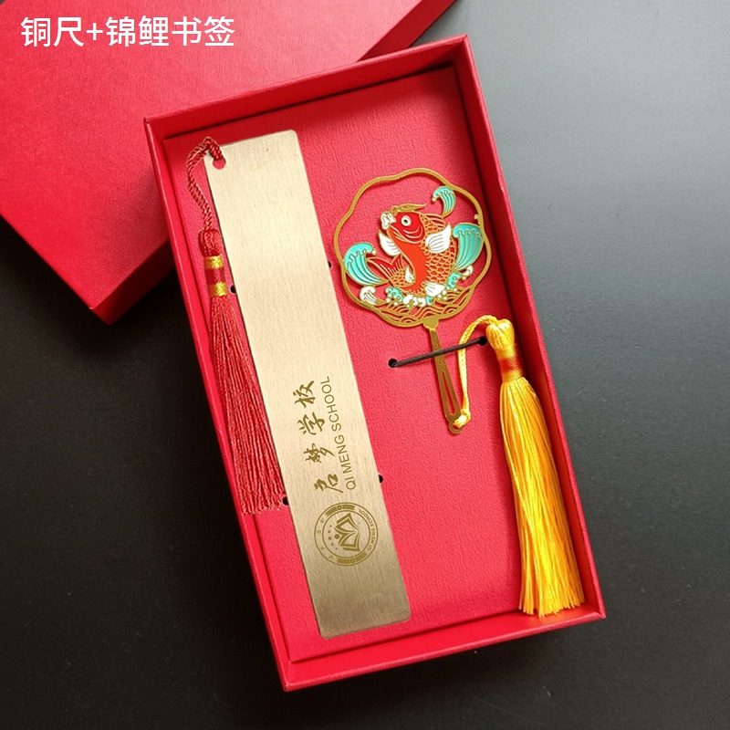 铜尺定制刻字+锦鲤书签 礼盒套装