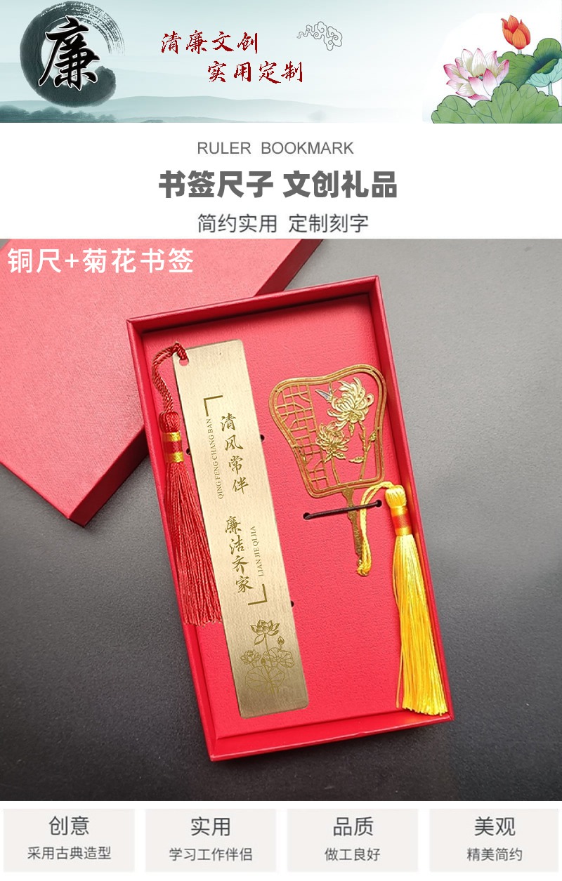 铜尺+菊花书签 礼盒套装