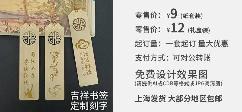 黄铜吉祥书签 (定制刻字)