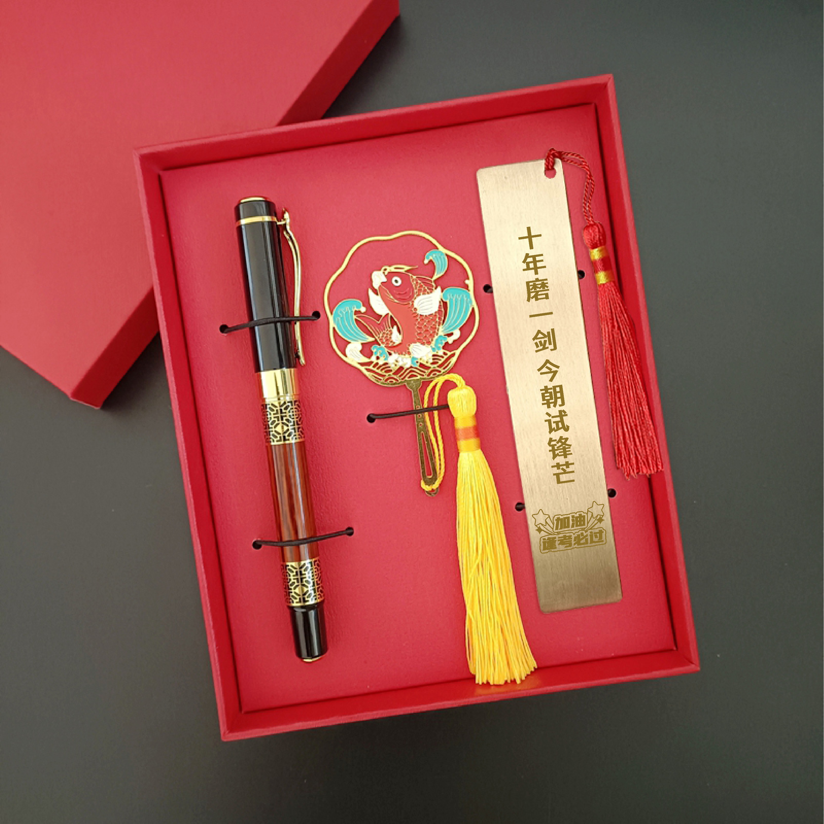 金属水笔+锦鲤书签+铜尺 礼盒套装