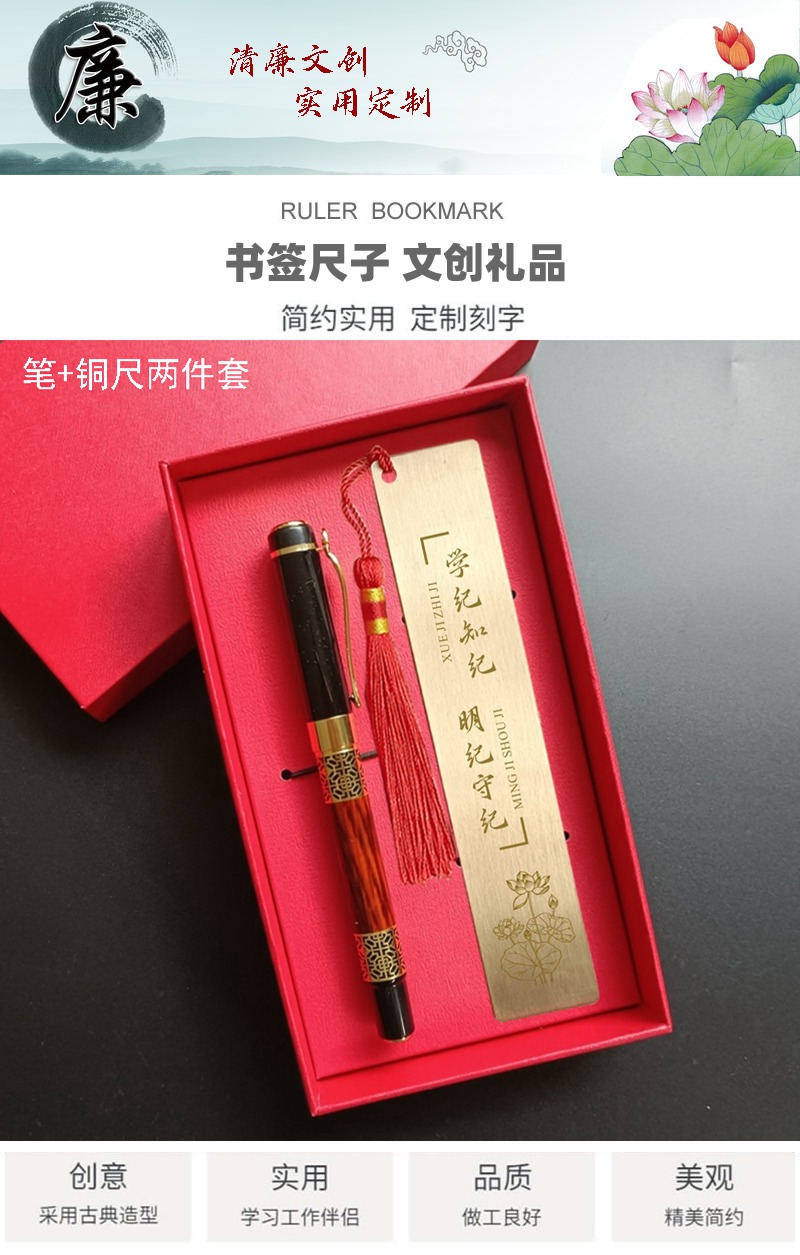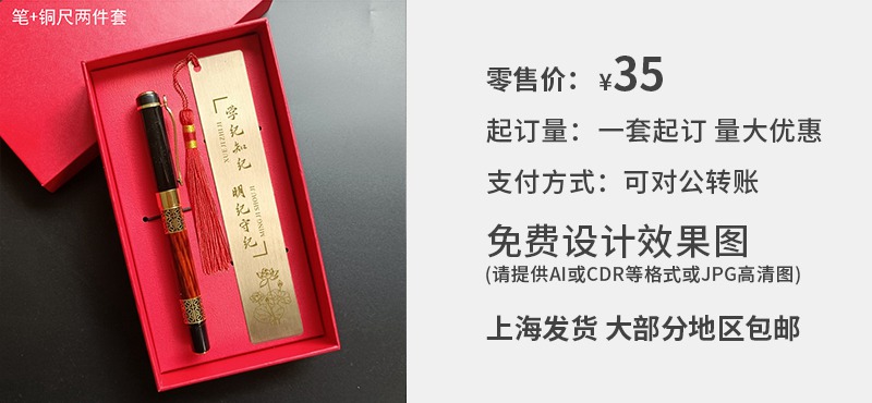 金属水笔+铜尺 礼盒套装