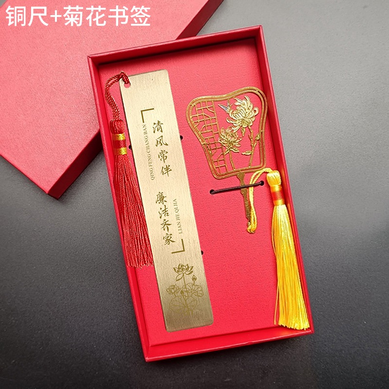 铜尺+菊花书签 礼盒套装