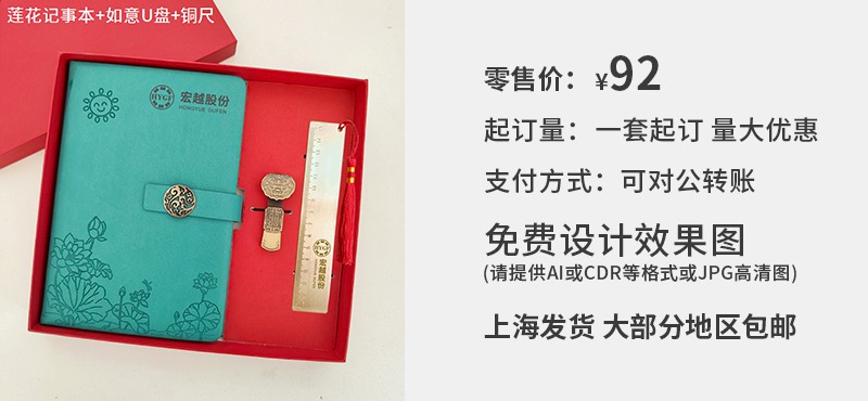 莲花记事本+如意U盘+铜尺 礼盒套装